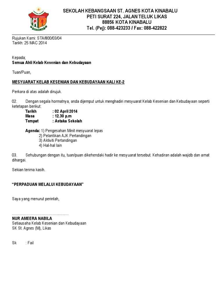 Contoh Surat Panggilan Mesyuarat Kokurikulum Baru Letter Website